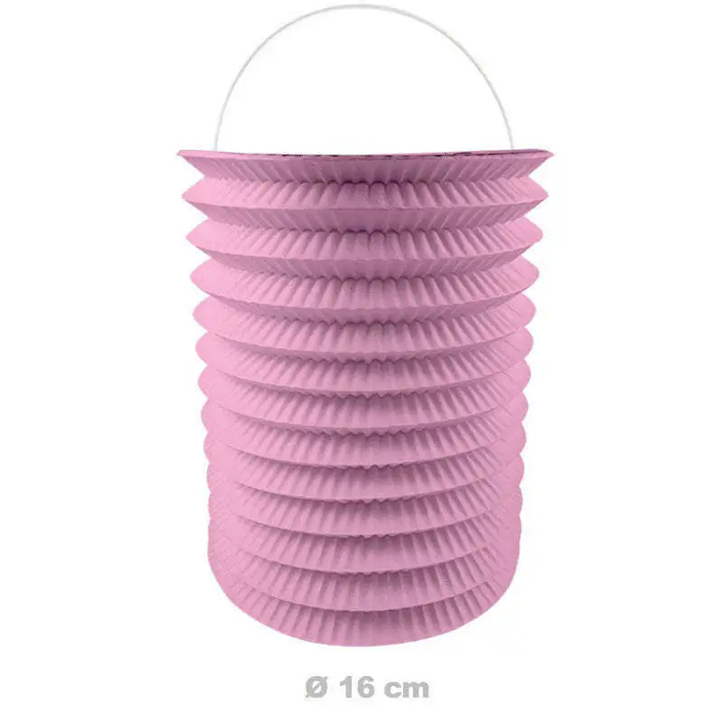 Ce lot de 12 lampions cylindriques roses mesurent 16 cm de diamètre. En papier ignifugé, il pourra accueillir une bougie, prévue à cet effet.