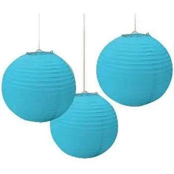 Ce lot de 3 lanternes Japonaise de couleur turquoise est en papier, la lanterne mesure 24 cm de diamètre.