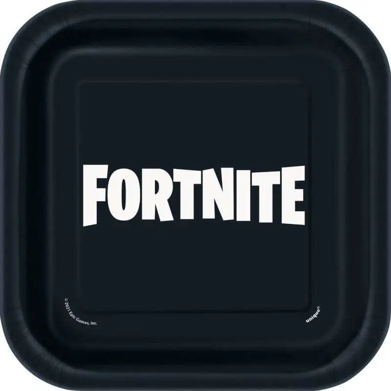8 Petites Assiettes écologiques Carrées Fortnite™ 18 X 18 Cm