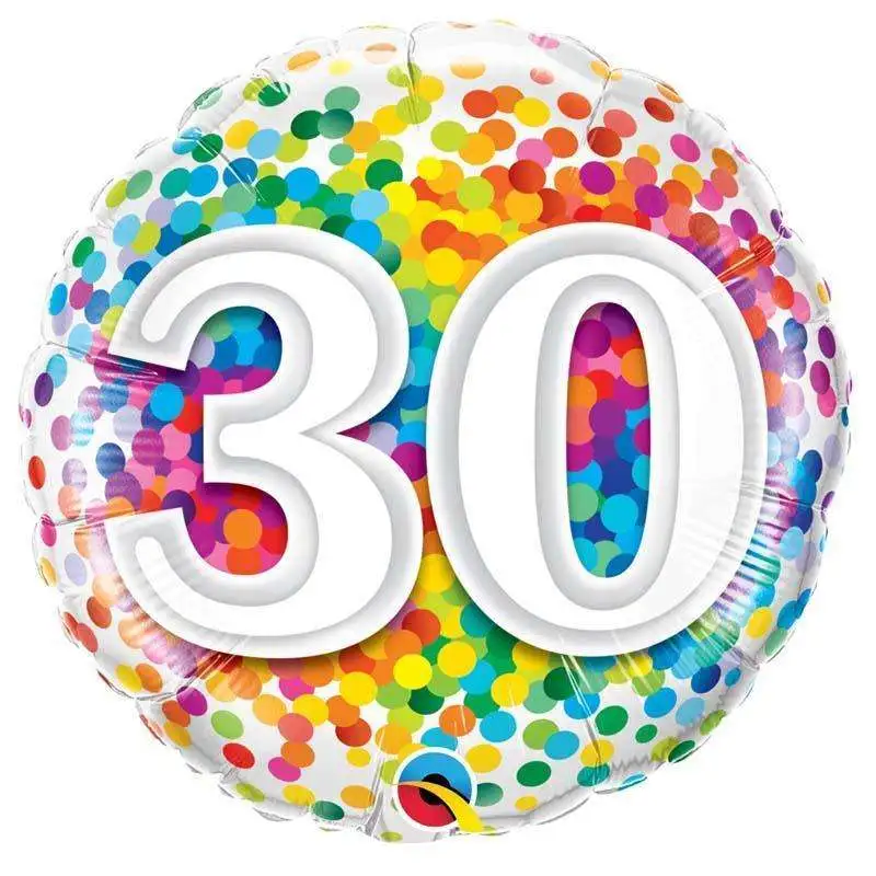 Ce ballon en aluminium possède l‘inscription “30”, entourée de pois multicolores. Il est adapté au gonflage à l’air ou à l’hélium. Il est livré non gonflé.