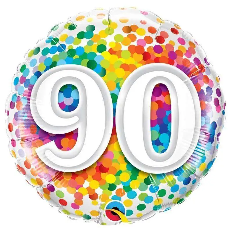 Ce ballon en aluminium possède l‘inscription “90”, entourée de pois multicolores. Il est adapté au gonflage à l’air ou à l’hélium. Il est livré non gonflé.