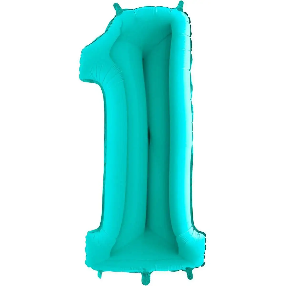 Ce ballon en aluminium, de couleur bleu turquoise, représente le chiffre 1. Il est vendu à l’unité et non gonflé.