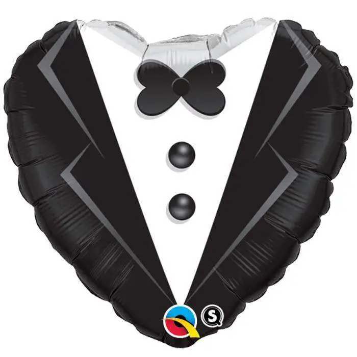 Ce ballon en aluminium est en forme de coeur noir et blanc. Il représente une veste de costume de marié. Il est adapté au gonflage à l’air ou à l’hélium. Il est livré non gonflé.