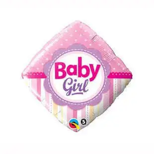 Ce ballon carré en aluminium possède l’inscription “Baby Girl”, entourée de pois et de rayures pastel. Il est adapté au gonflage à l’air ou à l’hélium.