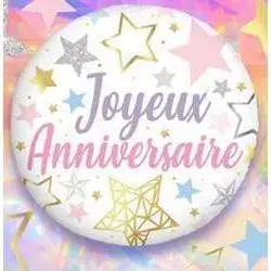 L’inscription “Joyeux Anniversaire” est entourée d’étoiles pastel.