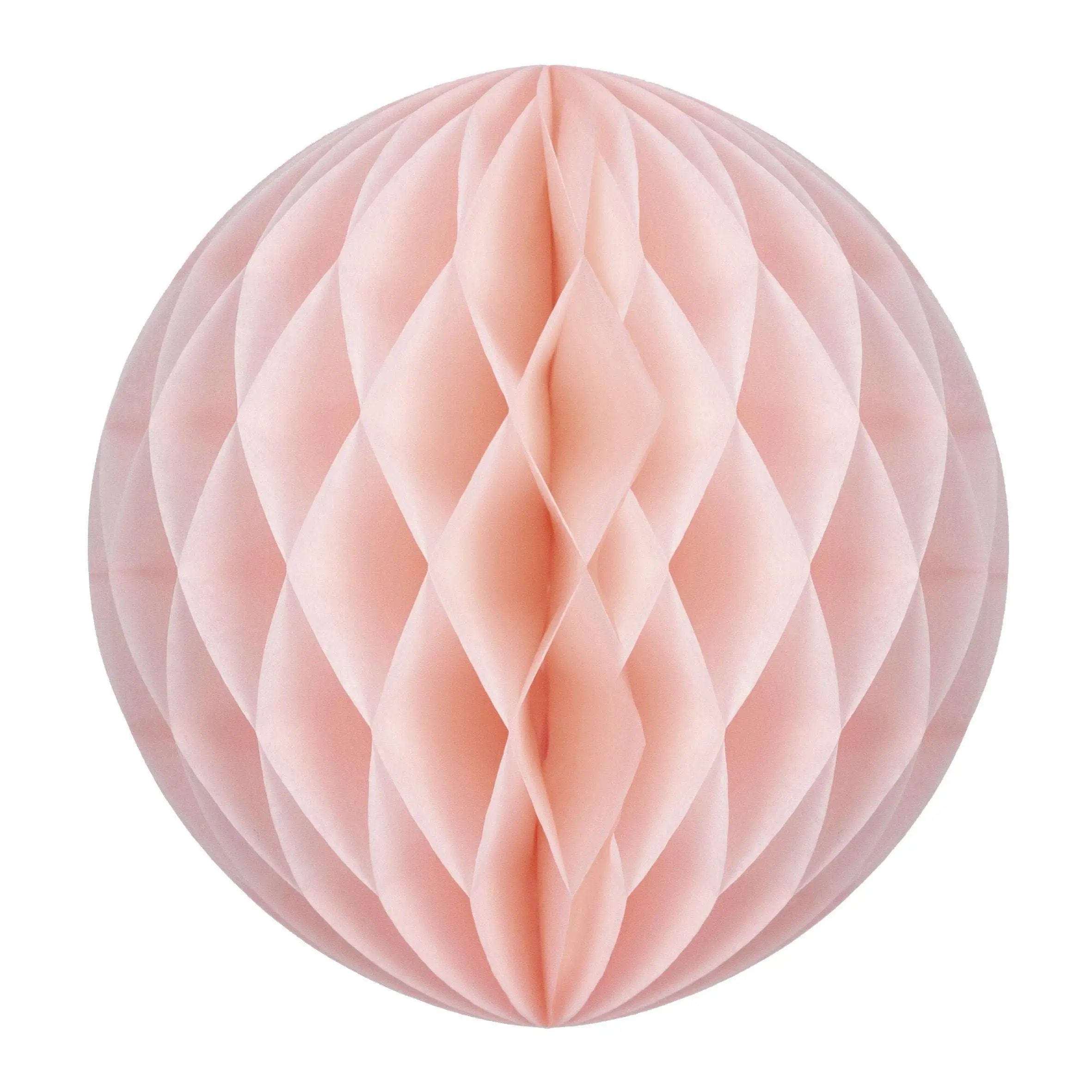 Cette boule alvéolée rose vintage en papier de soie mesure 30 cm de diamètre.