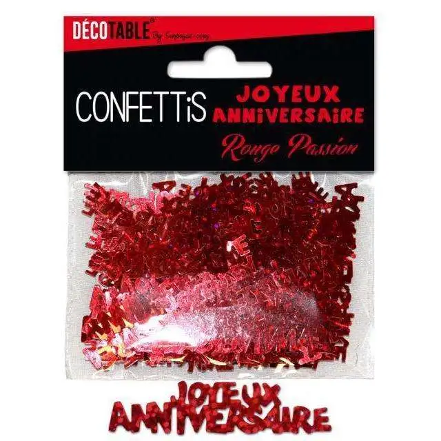 Voici des confettis joyeux anniversaire rouge qui conviendront parfaitement pour la décoration de votre événement.