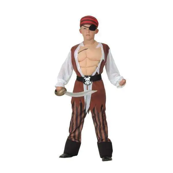 La tenue comprend une chemise avec torse musclé, une ceinture, un pantalon, une coiffe, et un cache-œil.