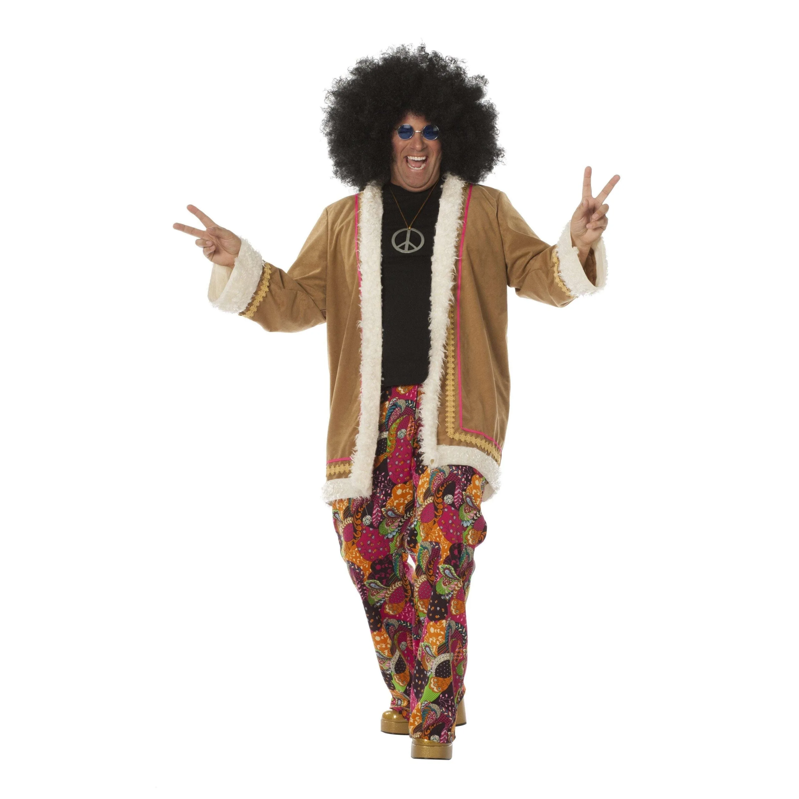 Ce costume de hippie pour homme est composé d’un pantalon multicolores aux motif de l’époque hippie et d’un manteau long, la matière imite le daim et il est bordé d’une fausse fourrure. C’est une véritable copie des habits des années 70. Ce déguisement est disponible de la taille 50 (M) à la taille 64 (XXXXL). Ici la taille 54 (XL).