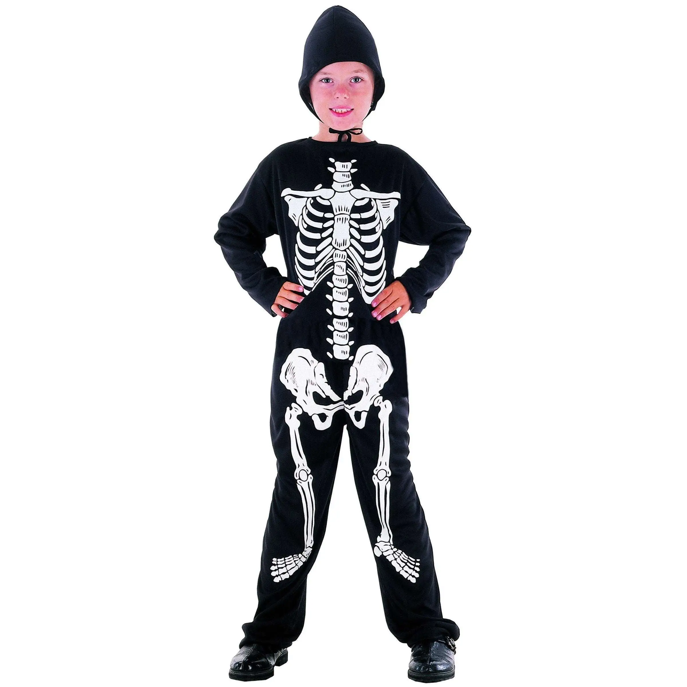 Ce costume de squelette pour enfant se compose d’une combinaison et d’une cagoule. Disponible en tailles S (4-5 ans), M (6-7 ans) et L (8-9 ans).