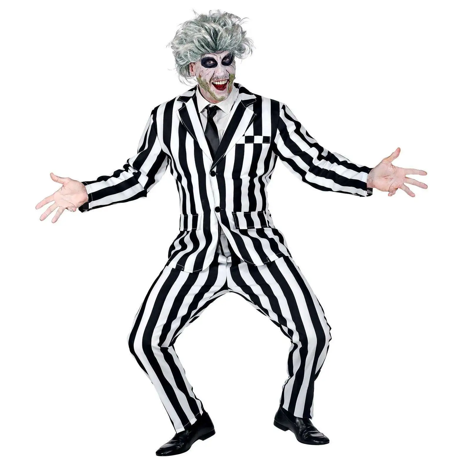 La tenue reprend celle du célèbre film Beetlejuice et est rayée noir et blanc.