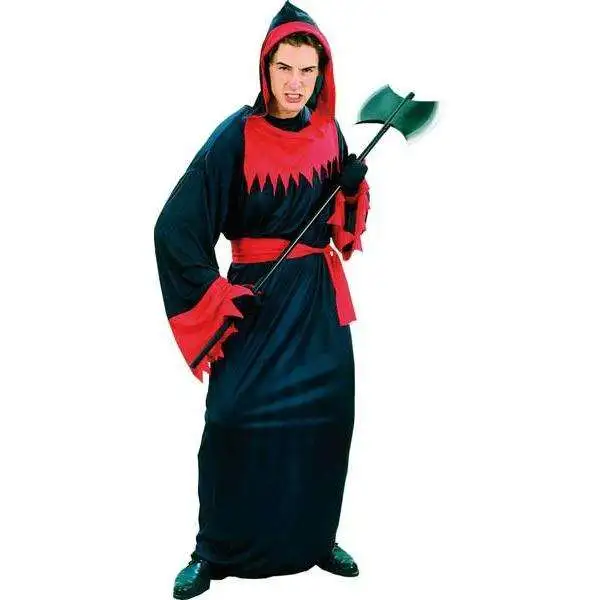 Ce déguisement de démon rouge pour adules se compose d’une tunique noire à capuche et d’une ceinture à nouer. Disponible en taille unique M/L.