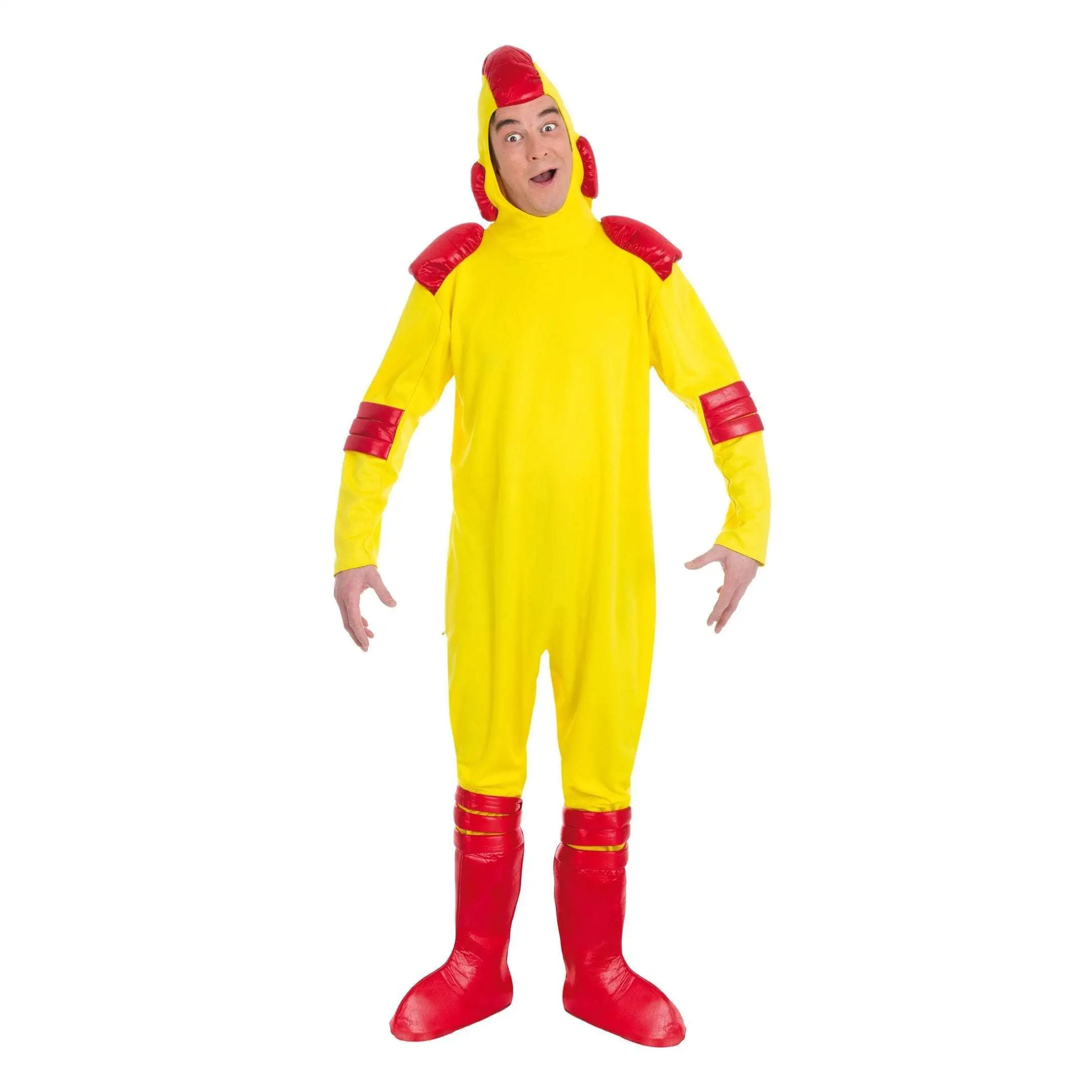 Ce déguisement de la Denrée contient une combinaison avec capuche et des surbottes. Il est disponible en taille unique adulte.