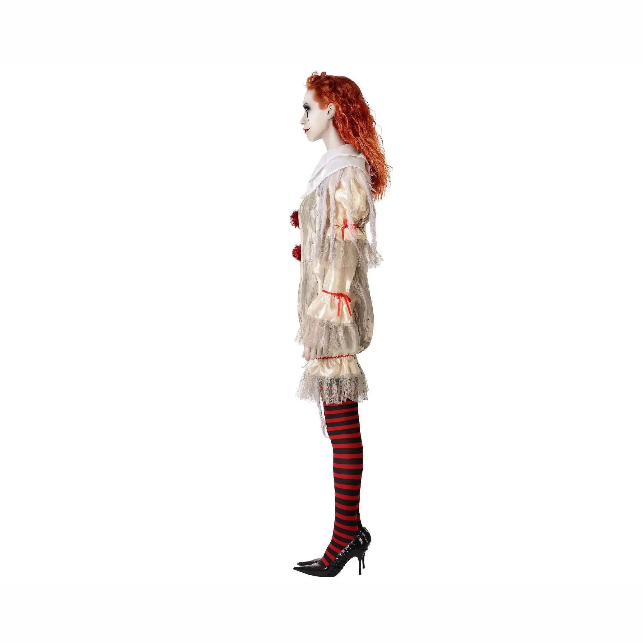 Ce déguisement de clown macabre est pour femme et se compose d’une combinaison. Disponible en taille M/L.