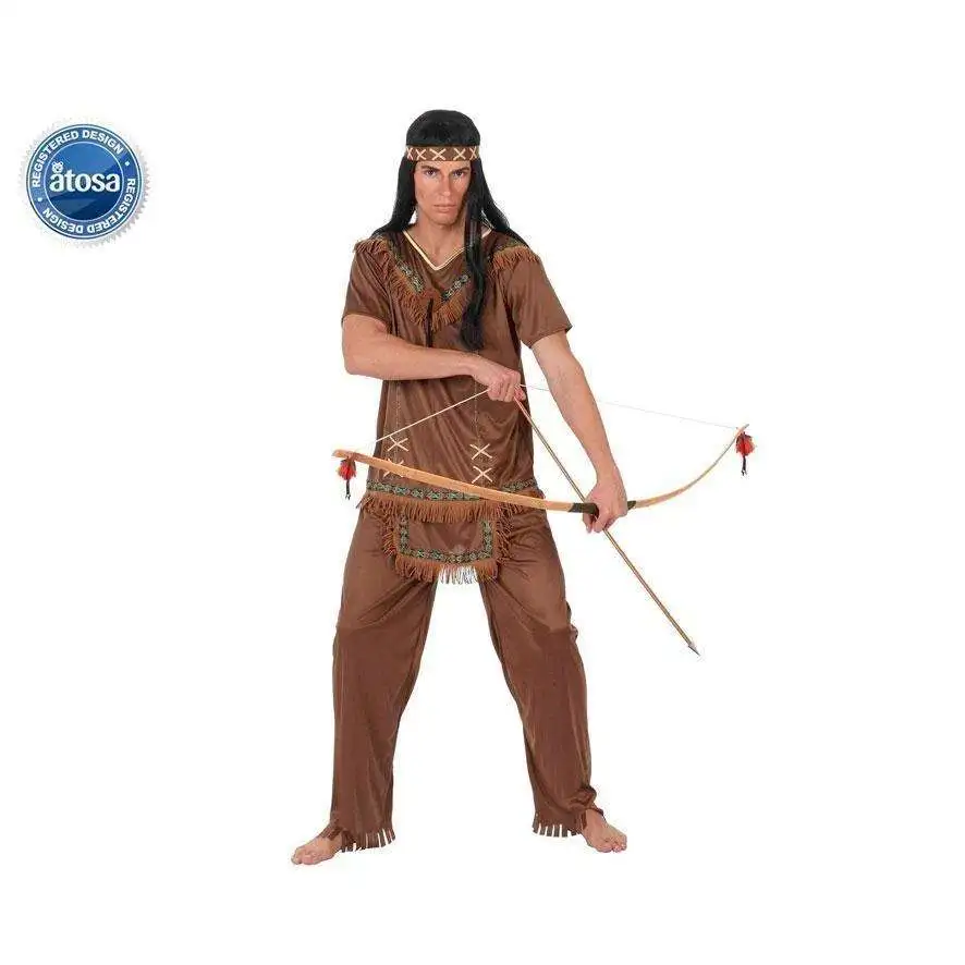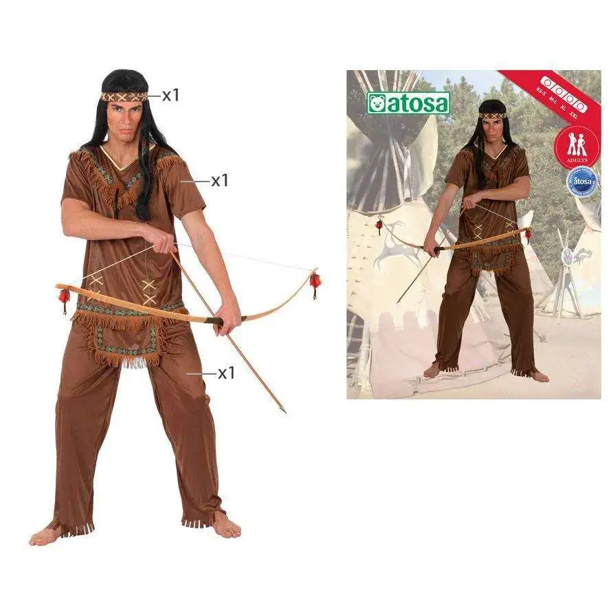 Déguisement d’indien marron, comprenant une tunique, un pantalon et un bandeau.
