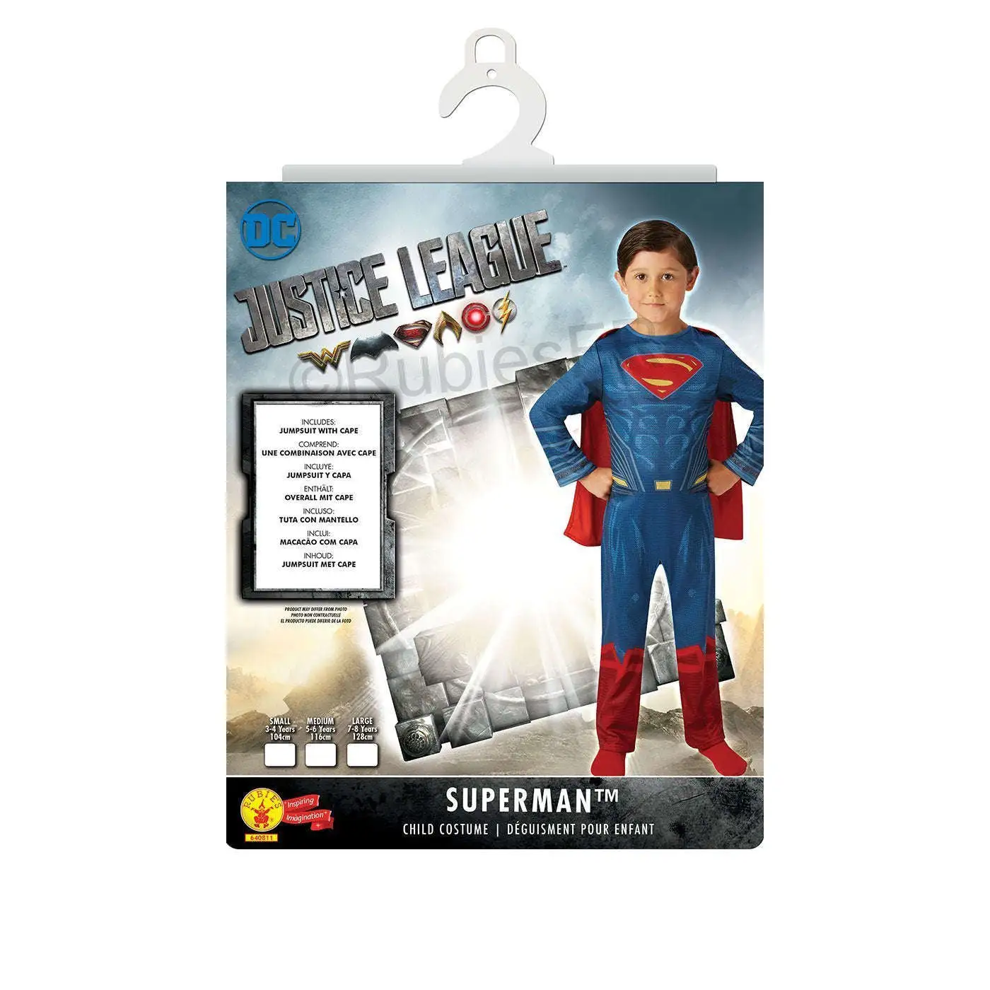 Ce déguisement classique de Superman pour enfants, sous licence officielle Justice League™, comprend une combinaison et une cape. Il est disponible en tailles 3/4 ans, 5/6 ans et 7/8 ans.
