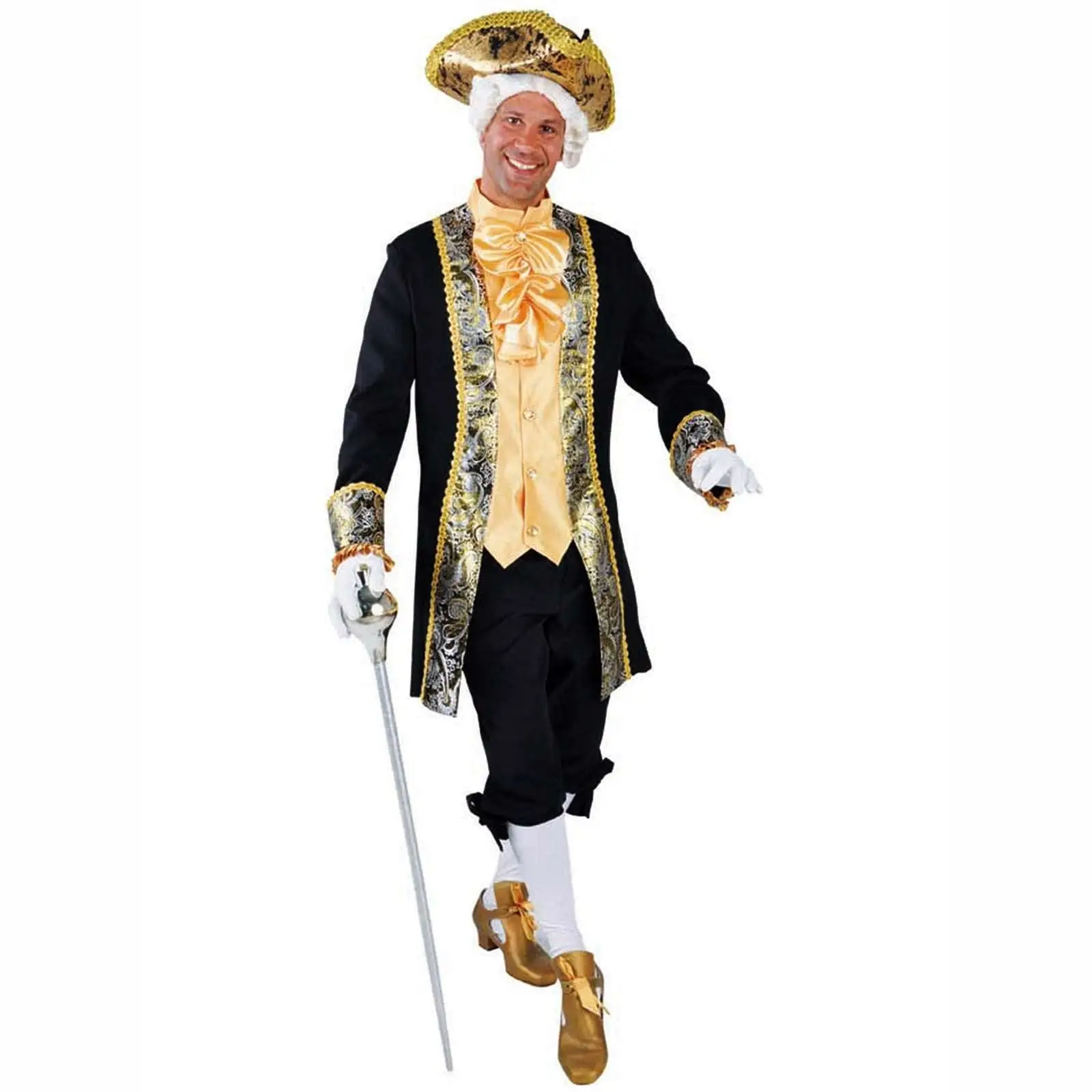 Ce déguisement Premium de marquis noir et or pour hommes se compose d’une veste avec gilet et d’un pantalon. Il est disponible en tailles S, M, L, XL et XXL.