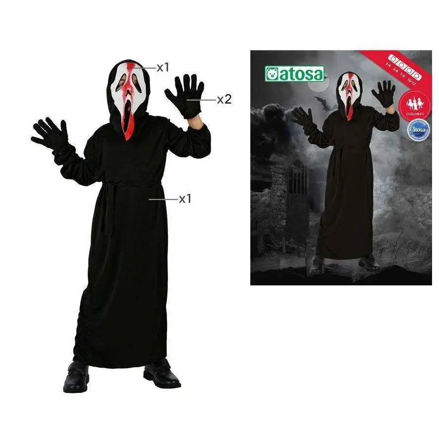 Ce déguisement de fantôme assassin pour garçons se compose d’une tunique, d’une cagoule et d’une paire de gants. Il existe en tailles T-2 (5/6 ans), T-3 (7/9 ans) T-4 (10/12 ans).