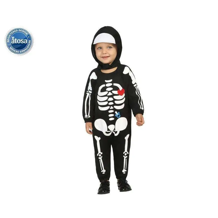 Ce déguisement de squelette pour bébé se compose d’une combinaison et d’une cagoule. Il existe en tailles 0/6 mois et 12/24 mois.