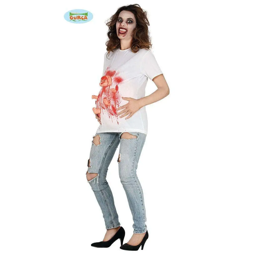 Ce déguisement de femme enceinte zombie se compose d’un tee-shirt. Il existe en tailles M et L.