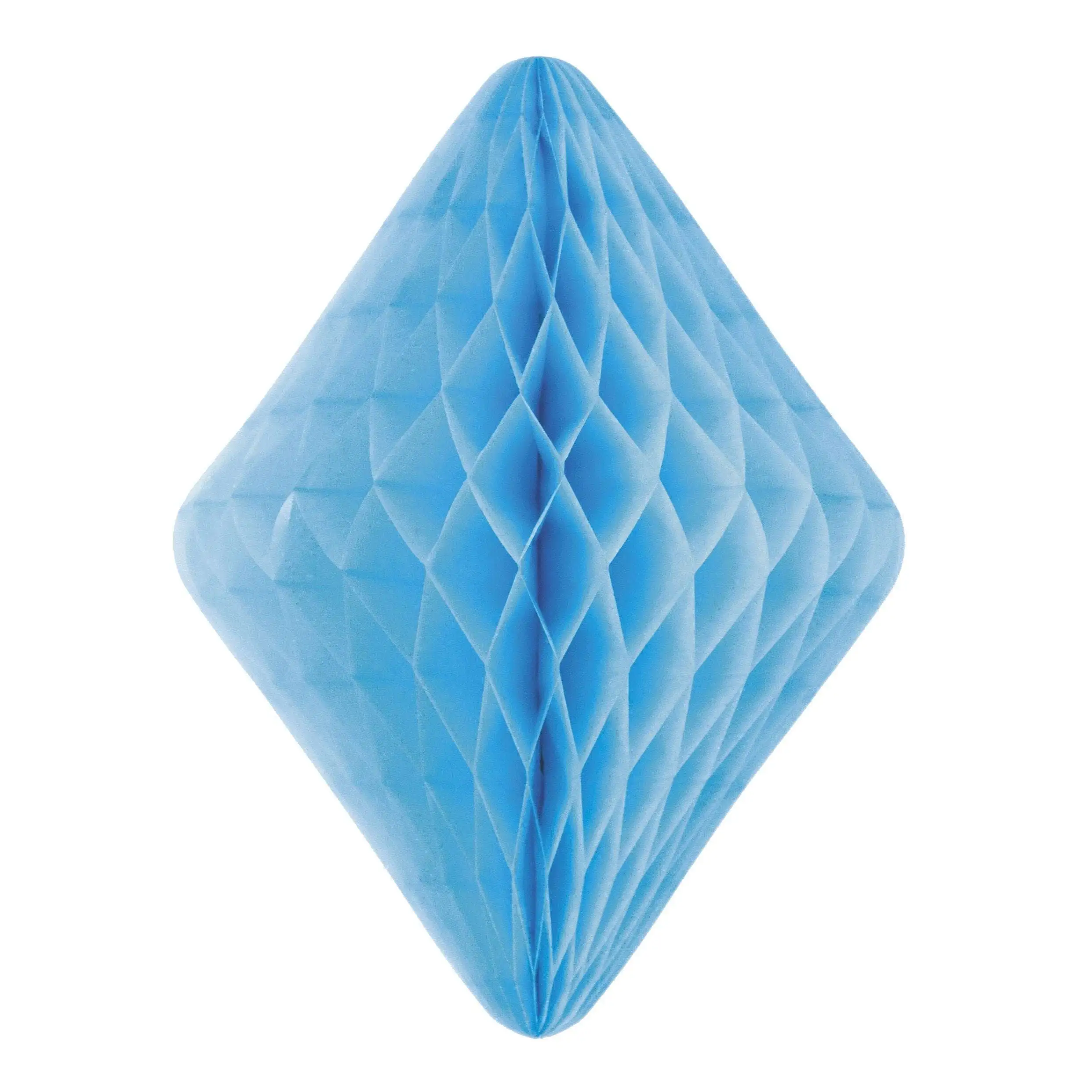 Ce diamant / losange alvéolé bleu aqua en papier de soie mesure 24 cm de diamètre.