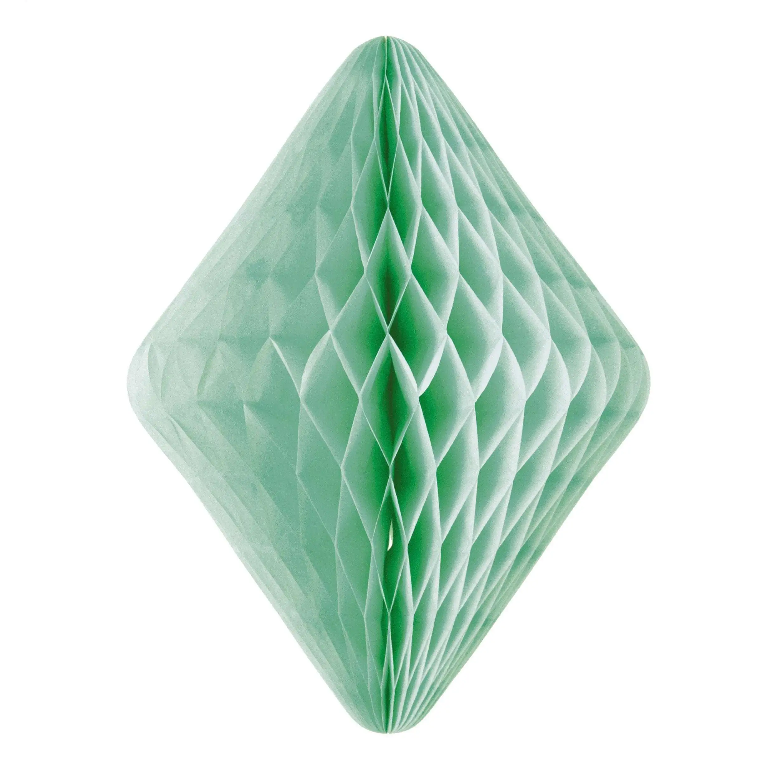 Ce diamant / losange alvéolé vert céladon en papier de soie mesure 24 cm de diamètre.