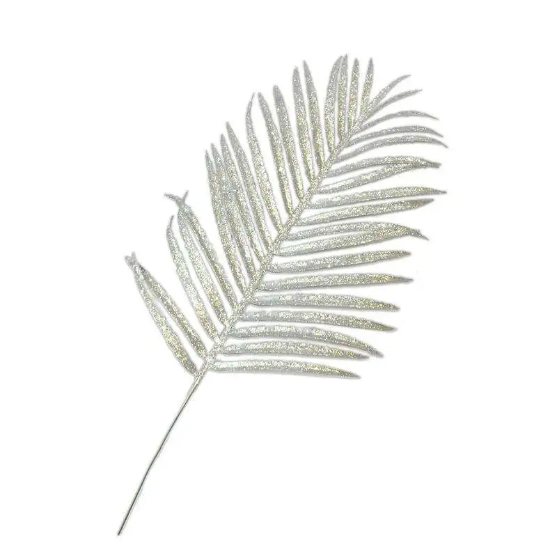 Cette feuille de palmier argentée décorative mesure 46 cm de haut sur 22 cm de large.