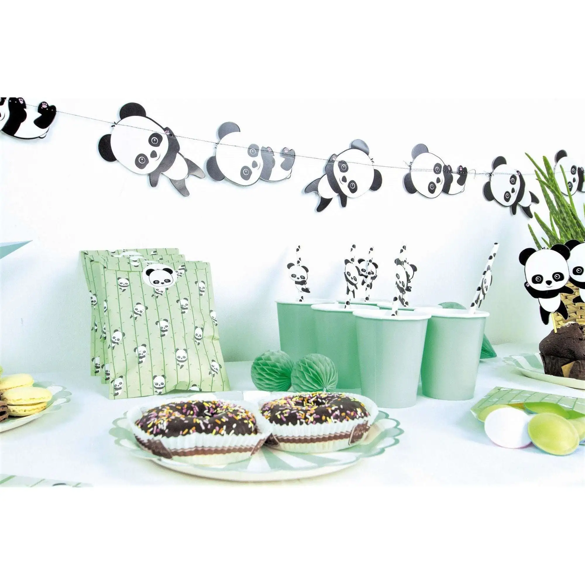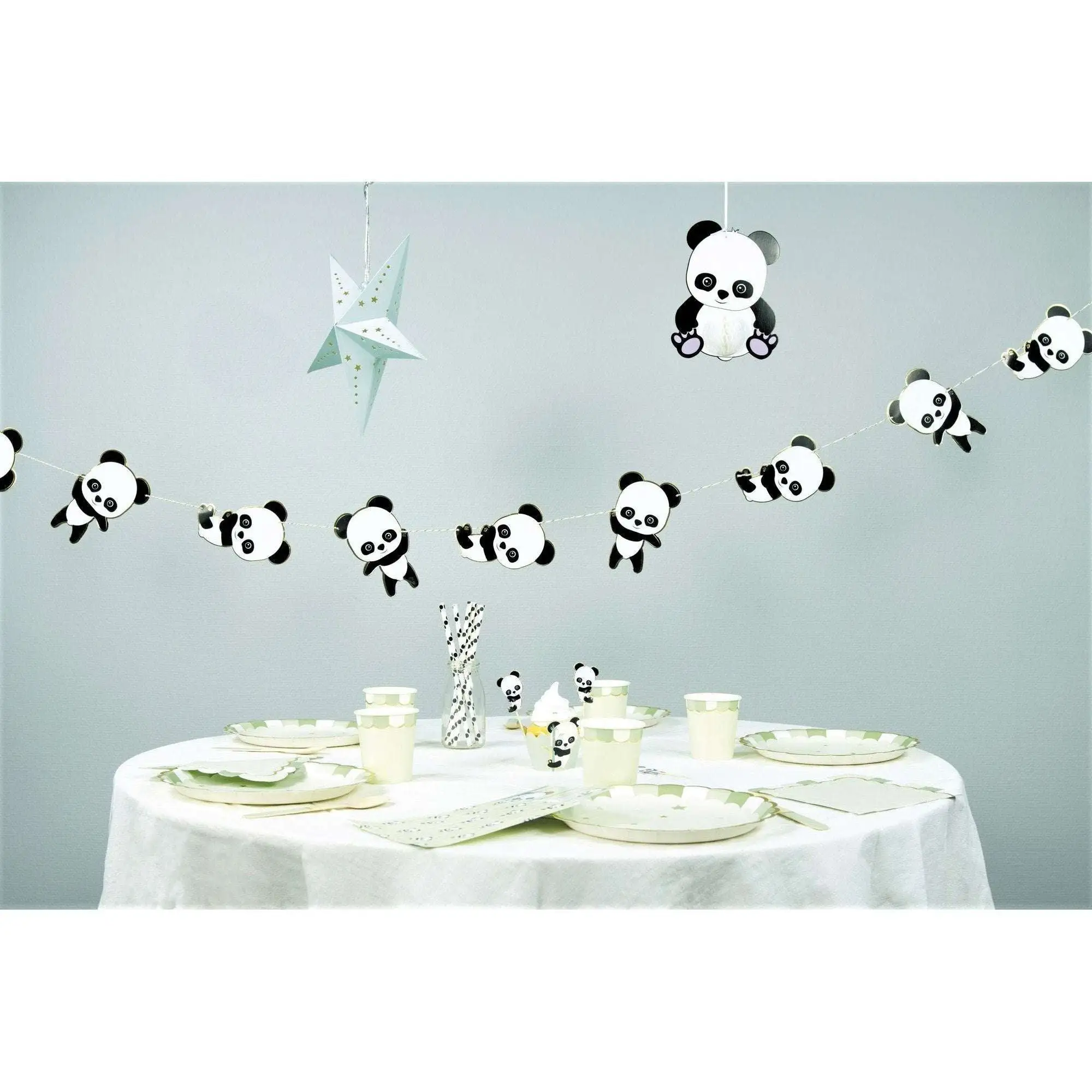 Cette guirlande en carton se compose de pandas. Elle mesure 3,50 mètres de long et chaque motif mesure 14 cm environ.