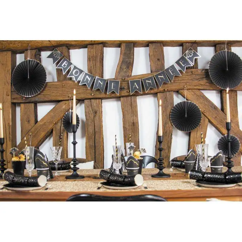 Cette guirlande mesure 2 mètres de long. Elle se compose de lettres noires et or, mesurant 15 cm chacune.