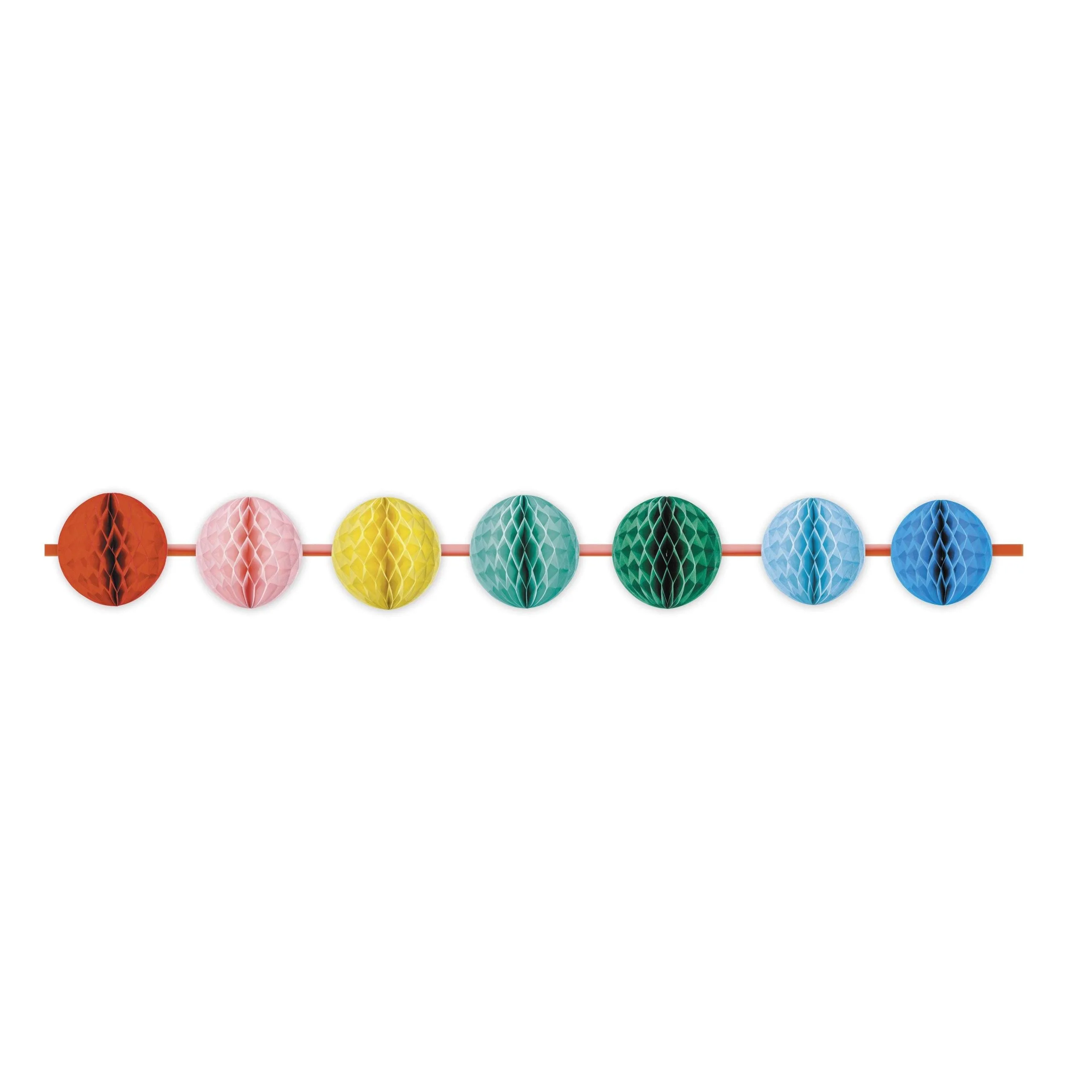 Cette guirlande mesure 3 mètres de long. Elle se compose de mini-boules alvéolées multicolores de 5 cm.