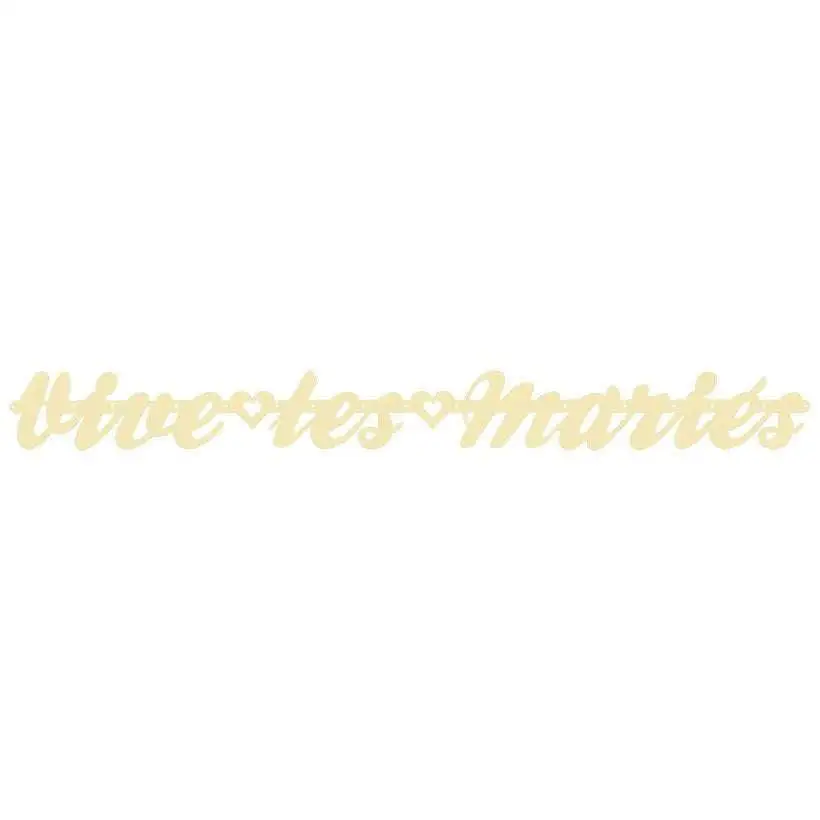 Cette guirlande ivoire, composée de lettres, “Vive les mariés” mesure 1,50 mètre de long. La hauteur des lettres est de 15 cm environ.