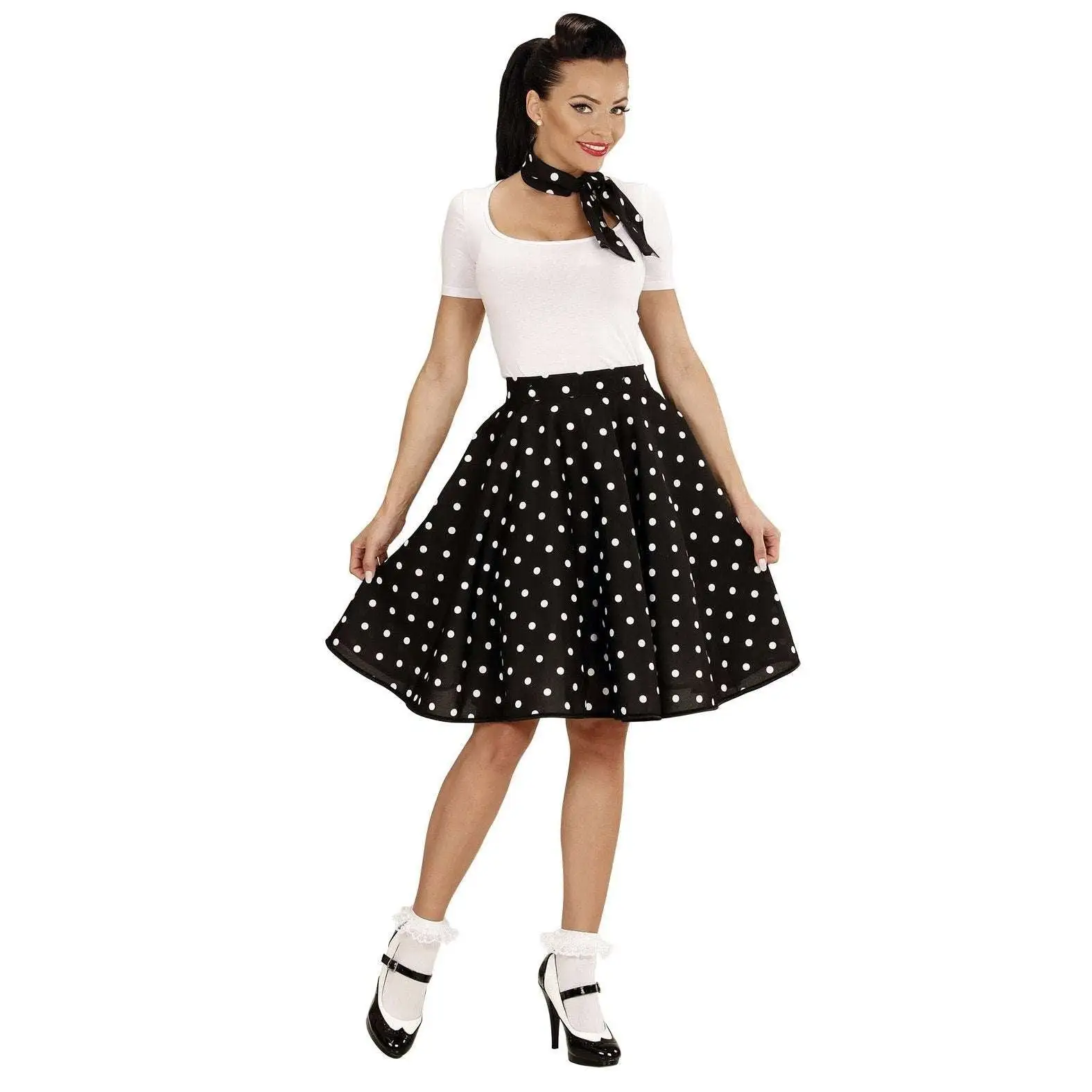 Cet ensemble jupe et foulard sera parfait pour danser un rock n’roll endiablé lors de vos soirées sur le thème des années 50 / 60.