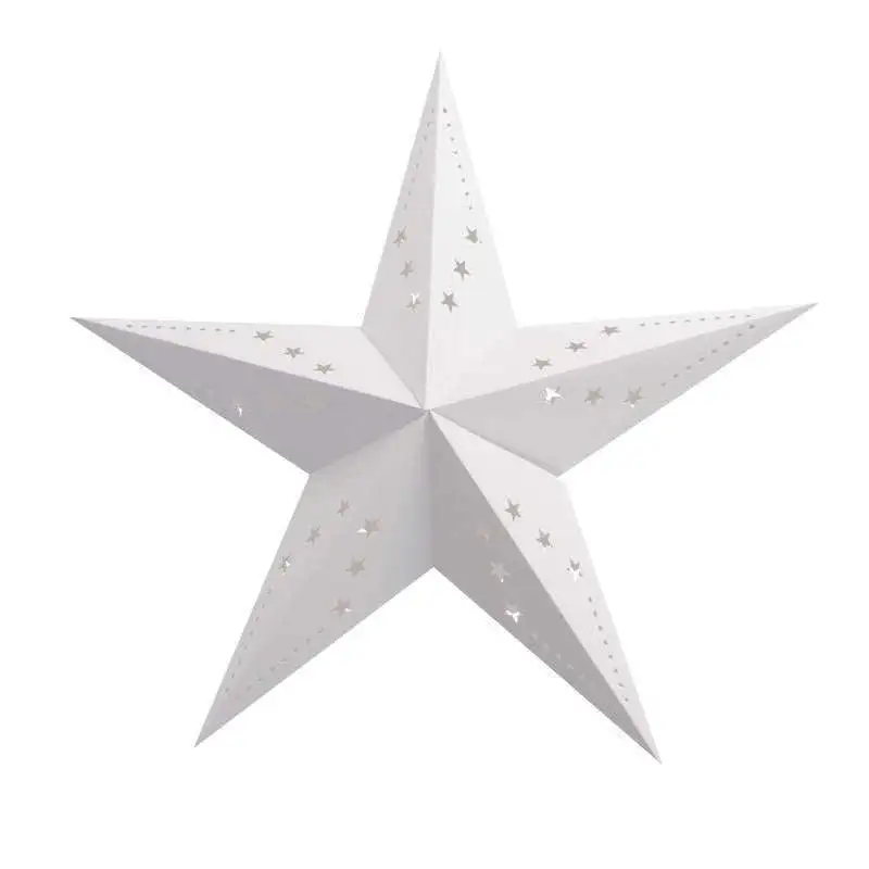 Cette lanterne blanche en forme d’étoile mesure 60 cm de diamètre. En carton non ignifugé, elle est uniquement destinée à un usage décoratif et ne pourra contenir de bougie en cire.