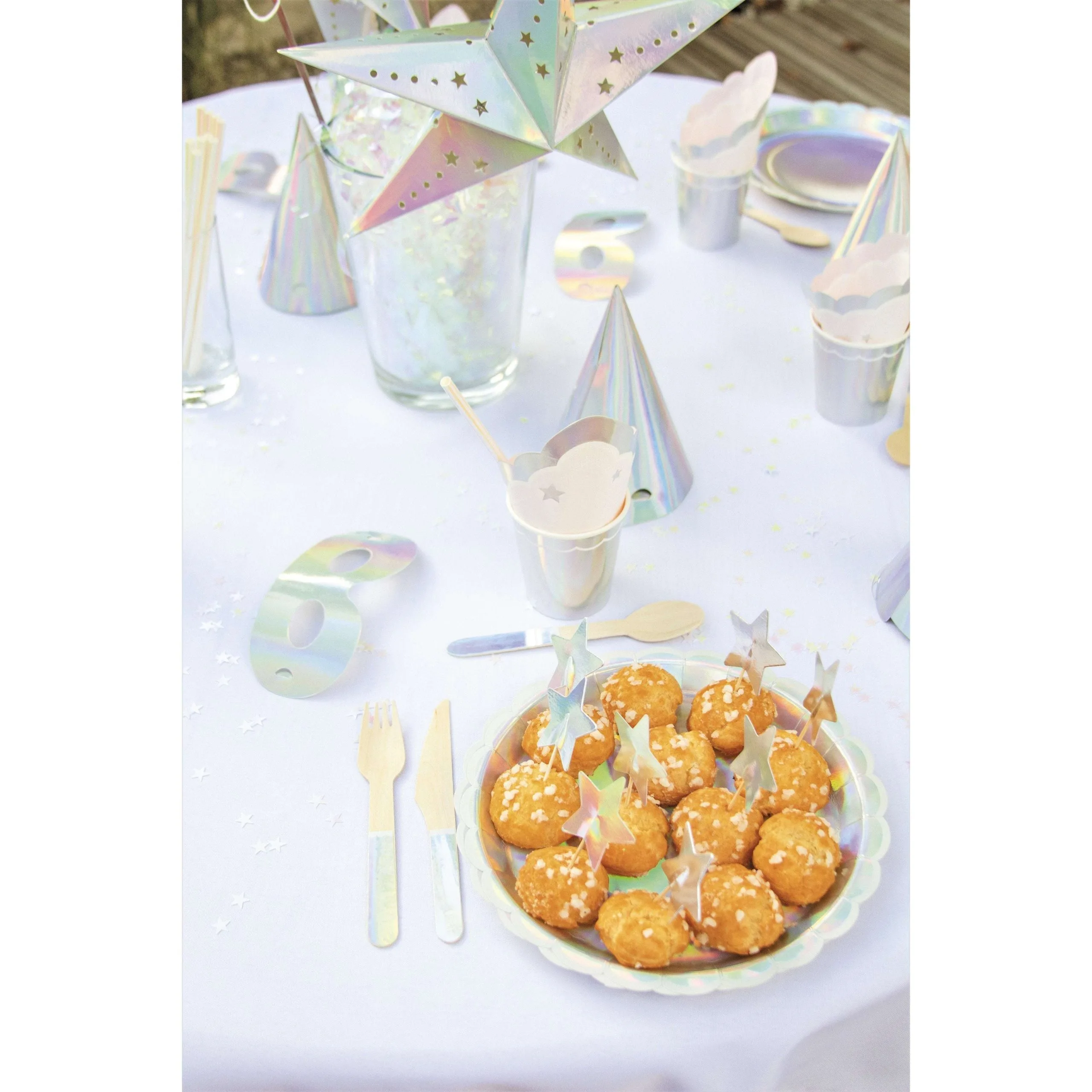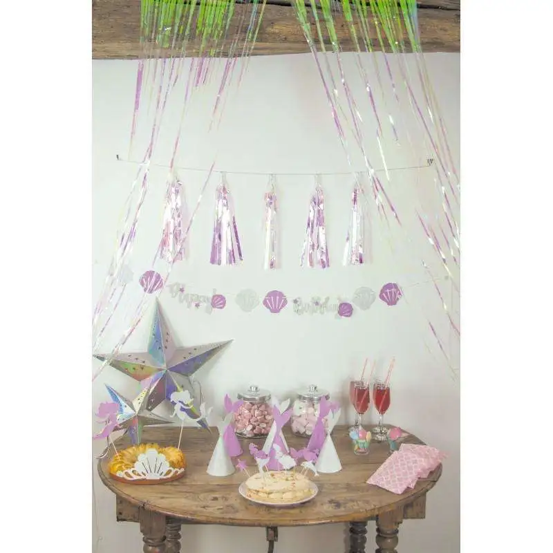 Cette lanterne irisée en forme d’étoile mesure 60 cm de diamètre. En carton non ignifugé, elle est uniquement destinée à un usage décoratif et ne pourra contenir de bougie en cire.