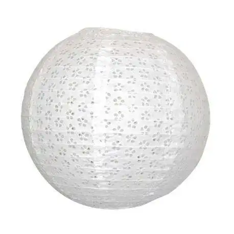 Cette lanterne dentelle blanche mesure 50 cm de diamètre. En papier non ignifugé, elle est uniquement destinée à un usage décoratif et ne pourra contenir de bougie en cire.