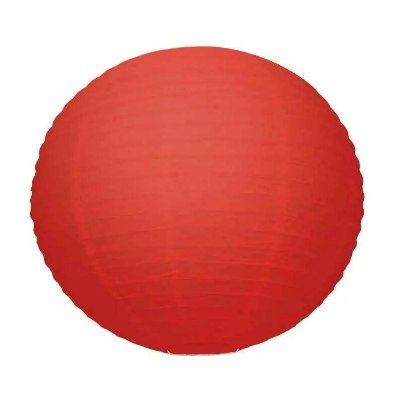 Cette lanterne rouge mesure 50 cm de diamètre. En papier non ignifugé, elle est uniquement destinée à un usage décoratif et ne pourra contenir de bougie en cire.
