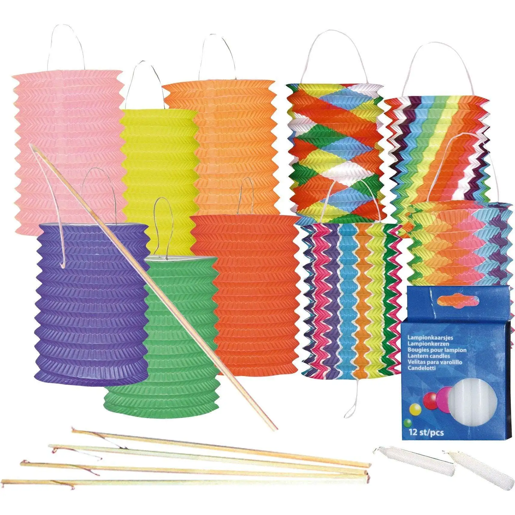 LOT DE 48 LAMPIONS CYLINDRIQUES ASSORTIS + 48 BATONS + 48 BOUGIES