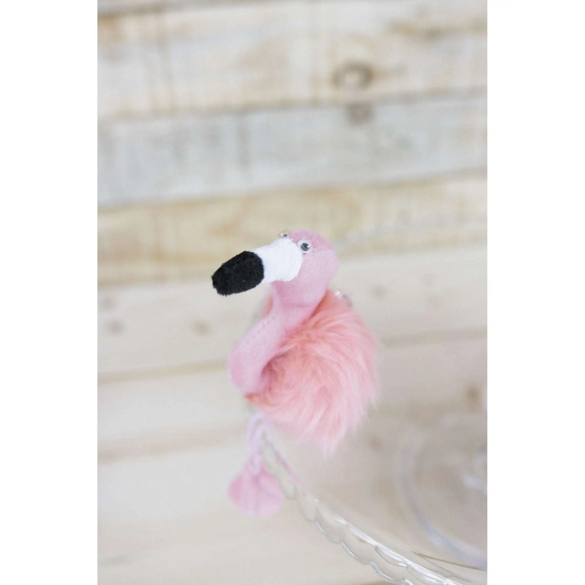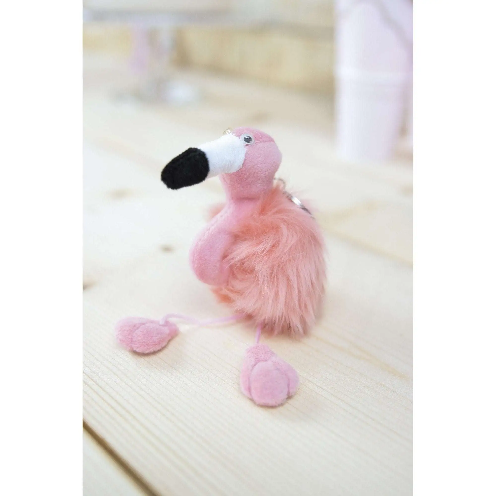 Ce porte-clé en peluche représente un flamant rose. Il mesure 13 x 10 cm.
