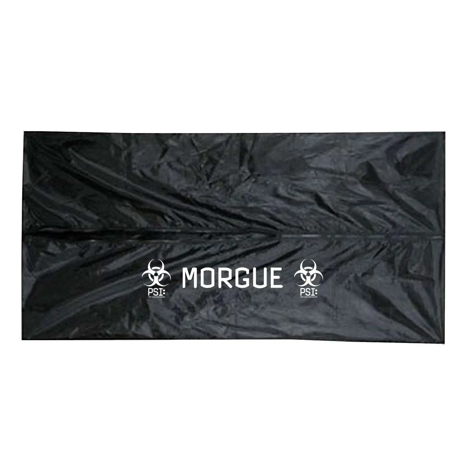 Ce sac mortuaire noir est en plastique épais, totalement opaque avec insciption “Morgue” en blanc. Ses dimensiosn sont 180 X 90 cm environ.