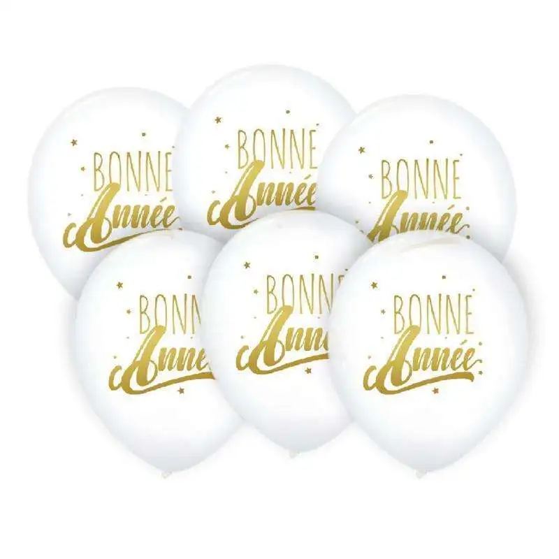 SACHET DE 6 BALLONS “BONNE ANNÉE” OR ET BLANC