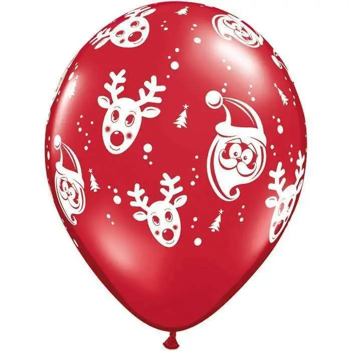 Ce sachet contient 6 ballons rouges, recouverts de têtes de rennes et du père Noël . Ils sont adaptés au gonflage à l’air ou à l’hélium.