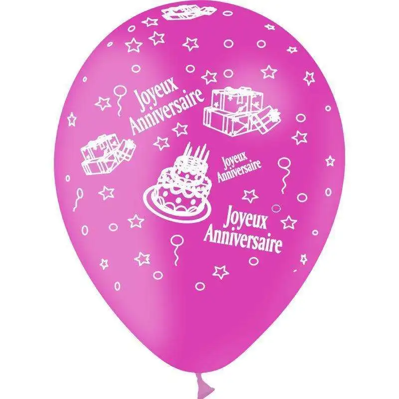 Ce sachet contient 8 ballons rose fuchsia, imprimés en blanc sur une seule face. Ils sont adaptés au gonflage à l’air ou à l’hélium.