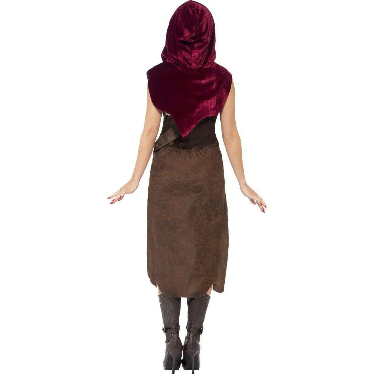 Ce déguisement de chasseuse médiévale comprend une robe, une cagoule et une ceinture. Elle est disponible en taille S, M, L.