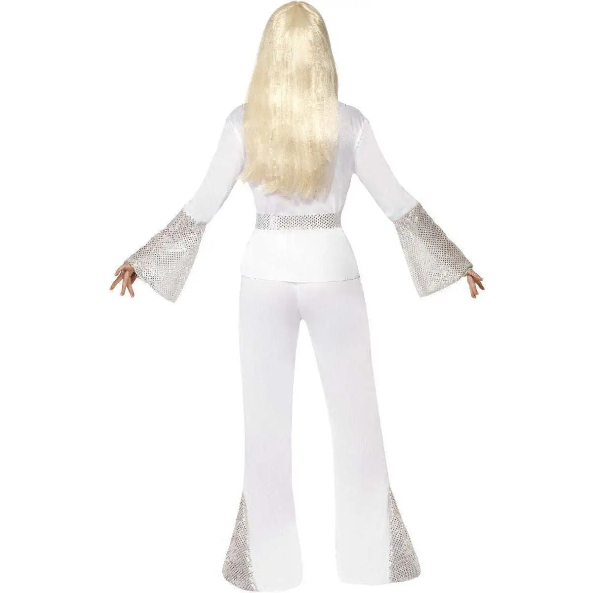 Ce déguisement se compose d’une combinaison blanche en polyester avec une ceinture. Quelques accessoires suffiront à améliorer ce costume très disco, casquette, perruque, collier etc.