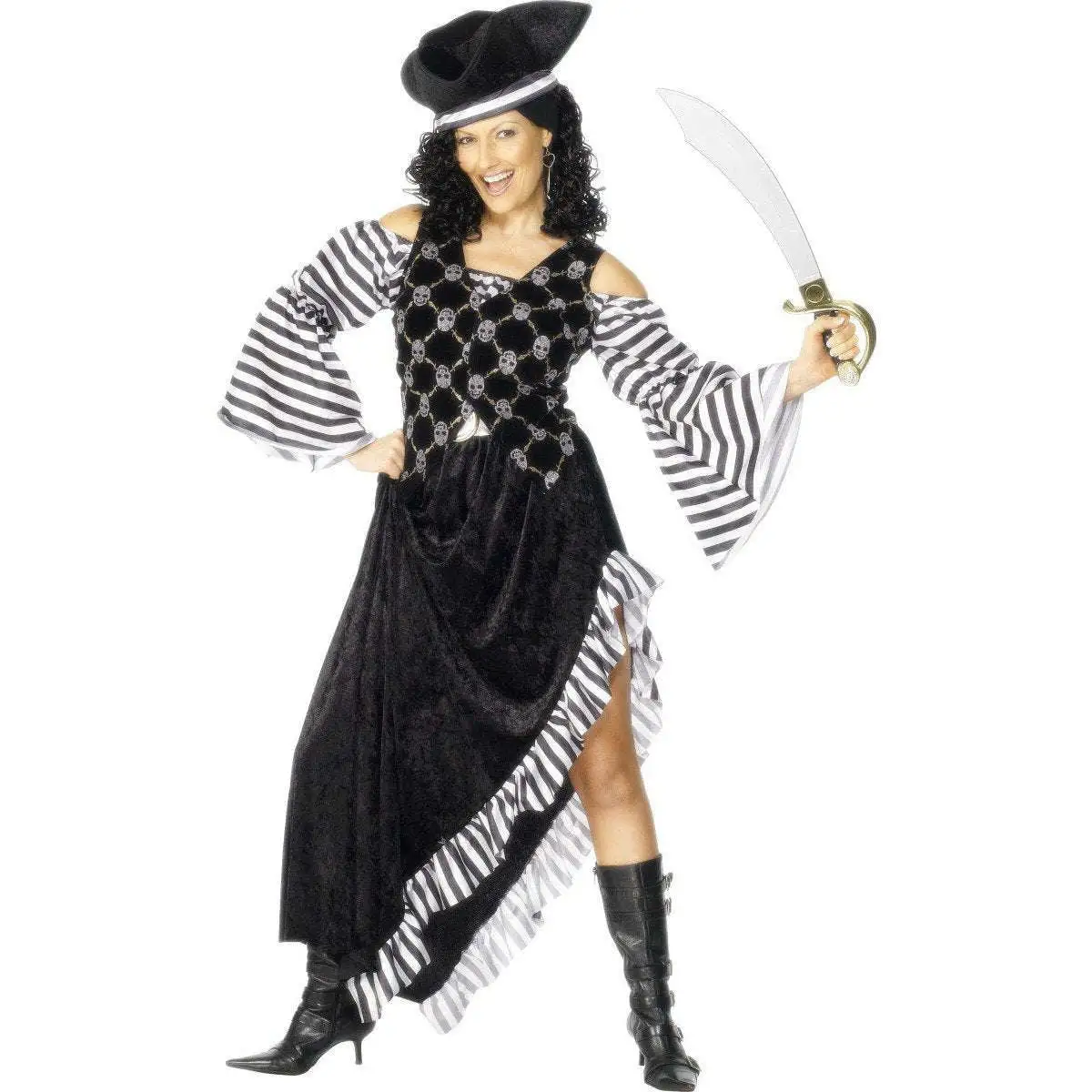 Costume de pirate comprenant une robe, un gilet, un chapeau et une ceinture. Taille S.