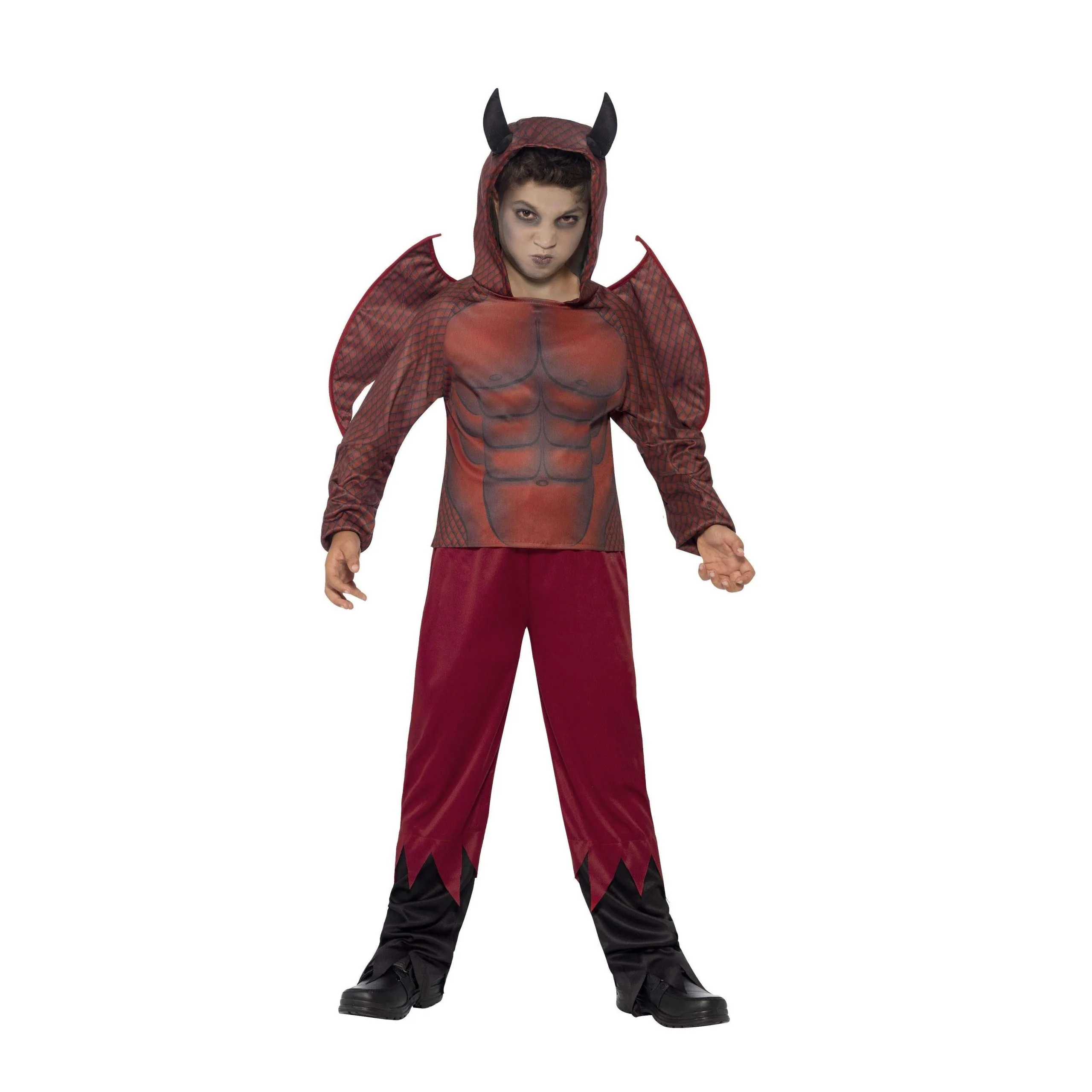 Ce déguisement luxe de diable pour garçon se compose d’un haut, d’un pantalon, d’une paire d’ailes et d’une cagoule avec cornes. Disponibl en taille S (4/6 ans), M (7/9 ans) ou L (10/12 ans).