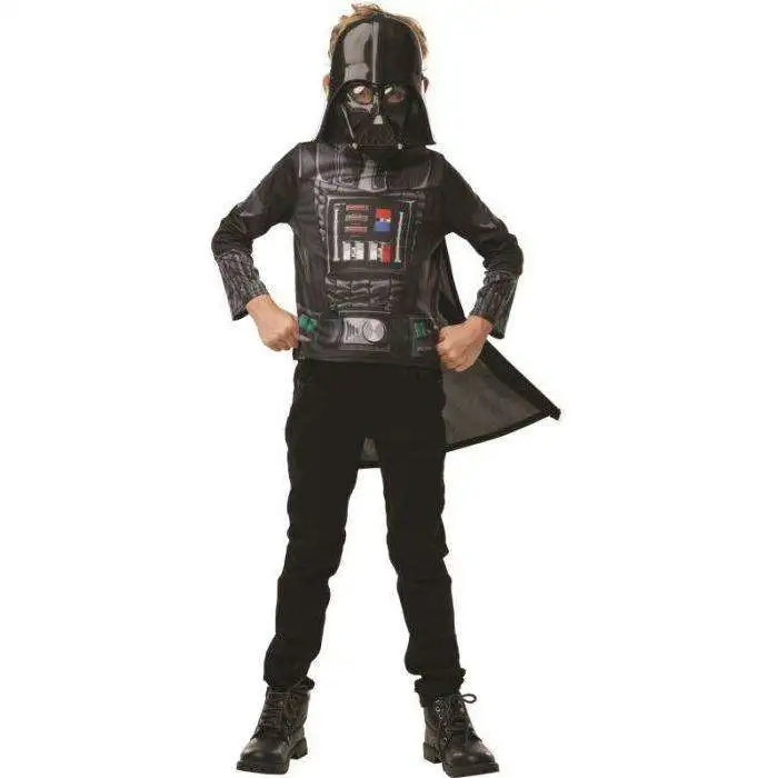 Ce costume Dark Vador pour enfants se compose d’un tee-shirt avec cape et d’un masque. Il est disponible en taille unique (5/8 ans environ).