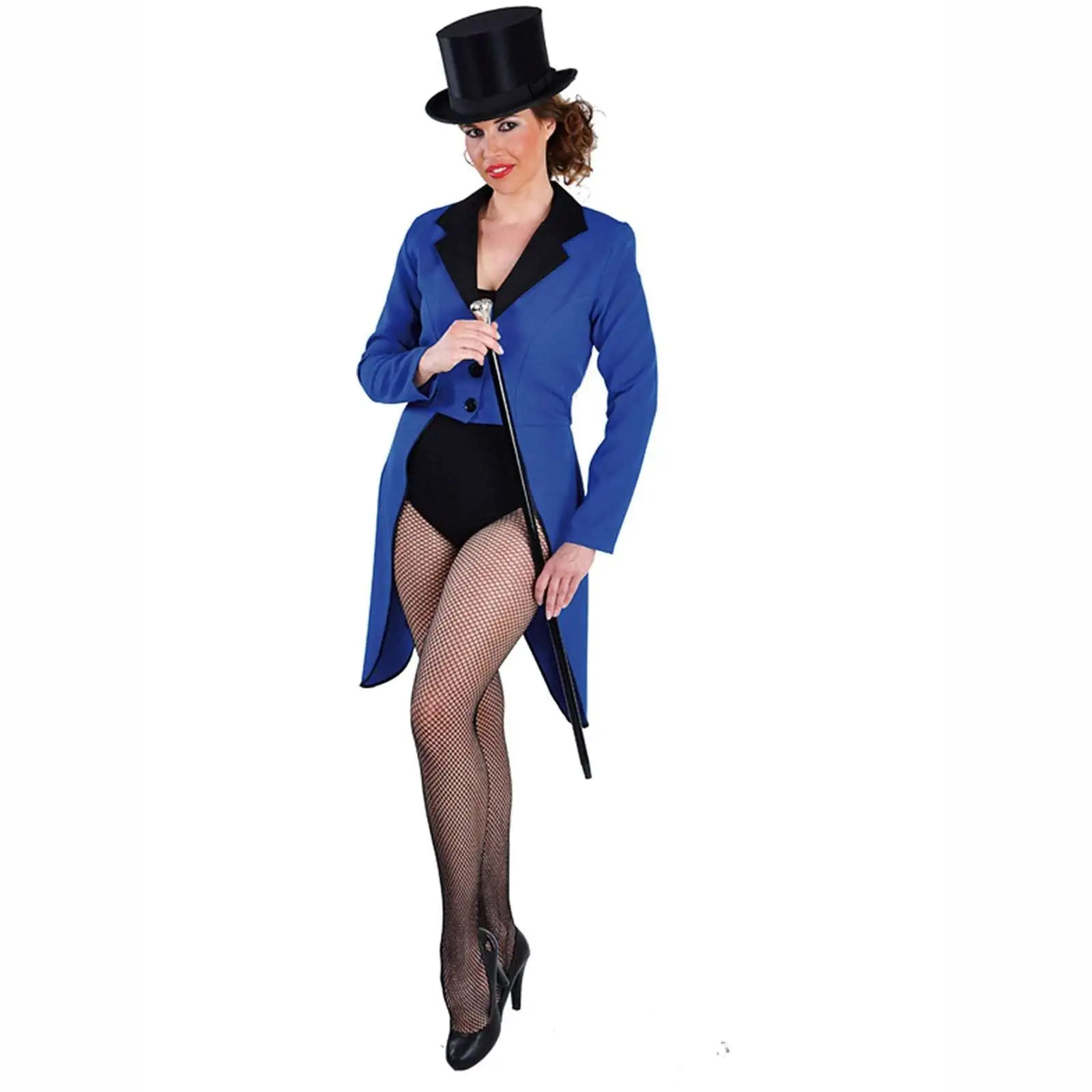 Cette veste luxe “queue de pie” bleue pour femmes existe en tailles 36, 38, 40, 42, 44, 46 et 48.